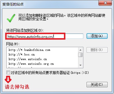 在弹出框的红色区域中输入“http://www.chinayanwen.com”,然后点击【添加】,完成设置。