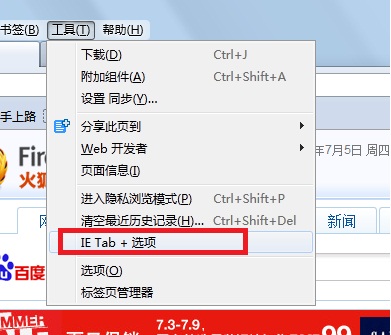 步骤二、点击“工具”->“ie tab+ 选项”,如图 5-2所示。