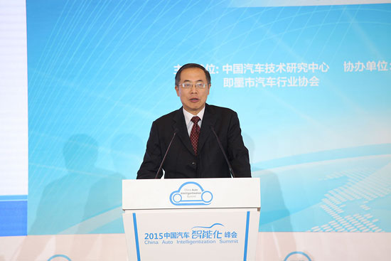 2015中国汽车智能化峰会,工业和信息化部原党组成员、总工程师朱宏任接受记者采访。