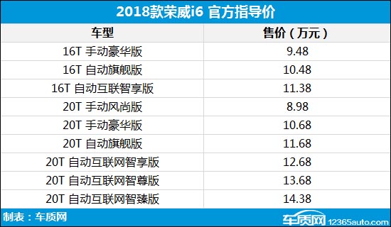 日前,我们从上汽官方获悉,2018款荣威i6车型正式上市,新车指导价区间为8.98-14.38万元,同时荣威还为购买20T部分车型的消费者提供了3000元支付宝红包,其实际价格区间为8.98-14.08万元。关于新车的详细售价,请见下表: