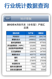 行业统计数据每月为您提供汽车分车型的产销排行榜数据和进出口排行榜数据,助您及时了解汽车行业市场动态。 |