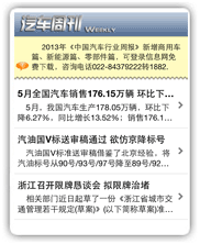 《中国汽车行业周报》每周为您汇总汽车行业的最新资讯,对热点、焦点问题进行深度解析,让您随手了解汽车行业大事小情。 |