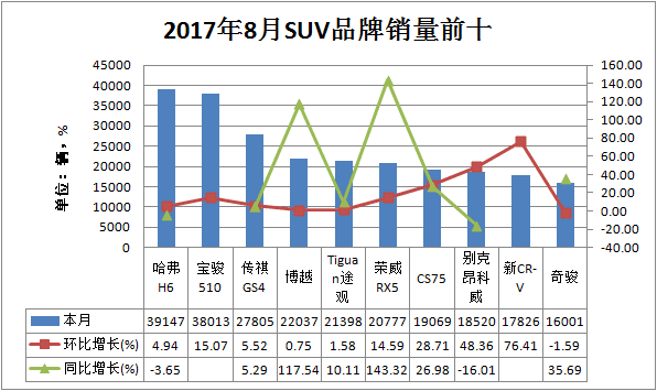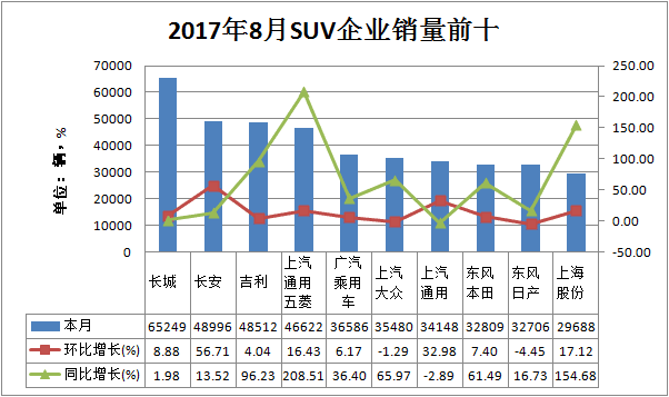 | 运动型多用途乘用车(SUV) | 740541 | 6108790 | 17.38 | 773793 | 5990608 | 17.1 |