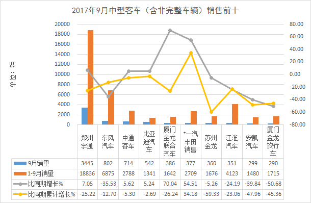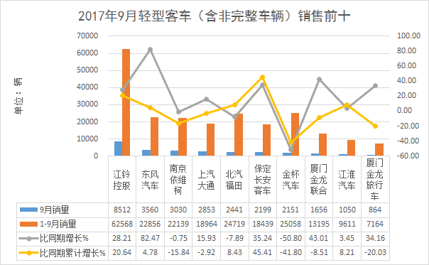 | 其中:客车 | 50729 | 349432 | -9.00 | 47287 | 346219 | -8.77 |