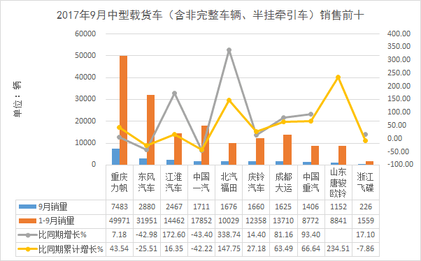| 其中:半挂牵引车 | 54080 | 453846 | 90.77 | 53671 | 472215 | 98.82 |